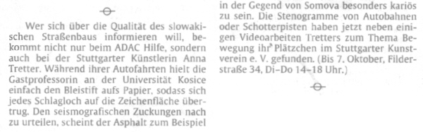 Stuttgarter Zeitung Freitag, 24. September 2004 Galerienotizen Schlagloch - Notate aus der Slowakei von Georg Leisten - Auszug -